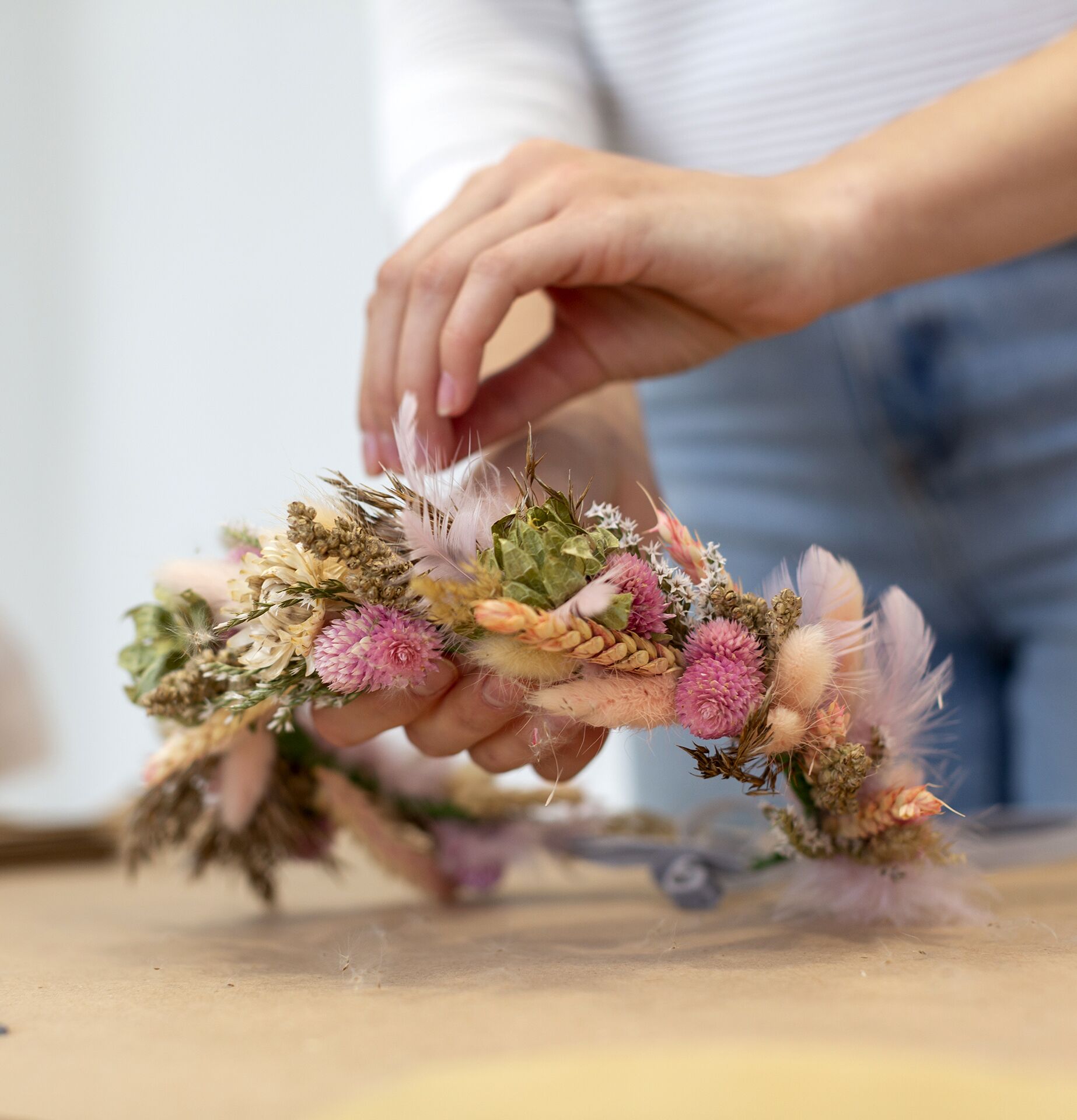 Créez votre couronne de fleurs séchées et repartez avec une composition unique, qui vous ressemble.